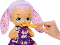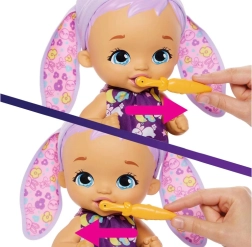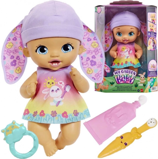 Fedezd fel a gyengéd gondoskodás világát a My Garden Baby nyuszibébivel, aki imádja az ölelést és a mindennapi szertartásokat. A gyerekek megmossák a fogát a mellékelt fogkefével és „fogkrémmel”, etethetik, majd a csomagolásból kialakított bölcsőbe fektethetik. A kétoldalas ruha a napfényes nappali megjelenésről az esti altatásra vált – tökéletes a nappali és éjszakai szerepjátékokhoz.