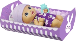 A baba tartós műanyagból készült, kifejező kék szemekkel, bájos szájjal és lila, nyuszifüles sapkával. Tartozik hozzá egy rágóka is, amely támogatja az érzékszervi játékot. A csomagolás fenntartható megoldást kínál – kicsomagolás után praktikus bölcsőként használható.