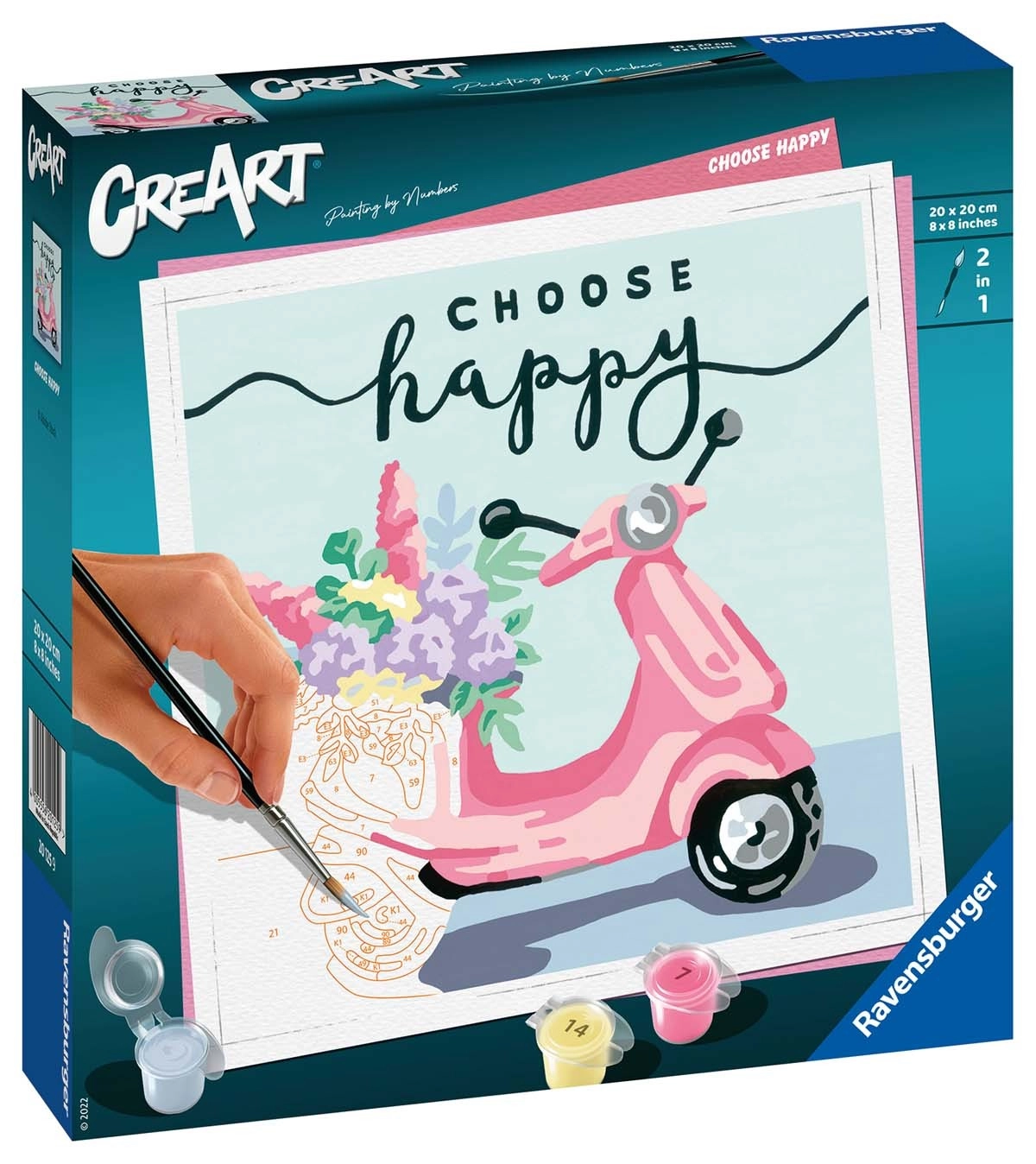 A CreArt „Choose Happy” kreatív készlet lehetőséget ad a 12 évesnél idősebb gyerekeknek különböző képzőművészeti technikák felfedezésére, a színekkel való kísérletezésre és a finommotorika fejlesztésére. Praktikus 22,2 × 22,2 × 4,8 cm-es mérete révén ideális otthonra és utazáshoz is.