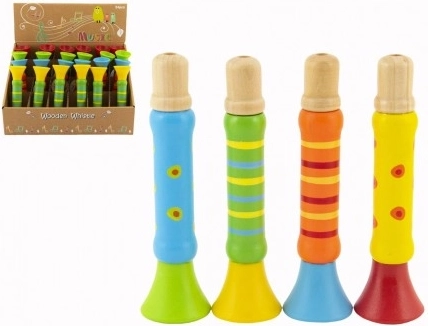 A 12 cm hosszú, színes fa síp kiváló választás a gyerekek első zenei próbálkozásaihoz. Egyszerű használata és kellemes hangja természetes módon támogatja a hallás, a ritmusérzék és a légzéskoordináció fejlődését. Több vonzó színváltozat közül lehet választani.