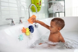 Változtasd a fürdést mini laborrá! A színes, tapadókorongos fogaskerekeket könnyen rögzítheted a kád vagy a csempe sima felületére. Ha vizet engedsz rájuk, forogni kezdenek, és együtt egy interaktív vízrendszert alkotnak, amely felfedezésre és kísérletezésre ösztönzi a gyerekeket.