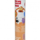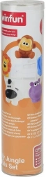 Tartalmaz egy vízilovat, oroszlánt, majmot, elefántot és zebrát lenyűgöző színekkel és vidám arcokkal.