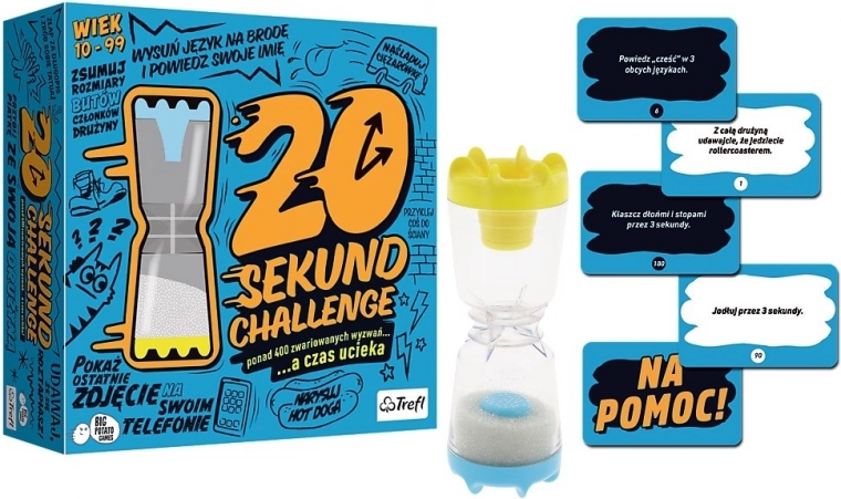 A 20 másodperces kihívás játékkal nemcsak a szórakozás garantált, hanem az izgalom is, hiszen a feladatokat időkorláton belül kell teljesíteni. A játékosok két csapatra oszlanak, és egy bíró vezetésével a lehető leggyorsabban oldják meg a feladatokat, növelve a nyomást az ellenfélen. A játék ideális a csapatmunkához, és rengeteg nevetést biztosít.
