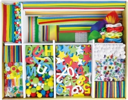 Az egyetlen dobozban található hatalmas anyagválaszték lehetővé teszi, hogy a gyerekek dekorációkat, figurákat és iskolai projekteket készítsenek – szabadon, a képzelet határtalan erejével.