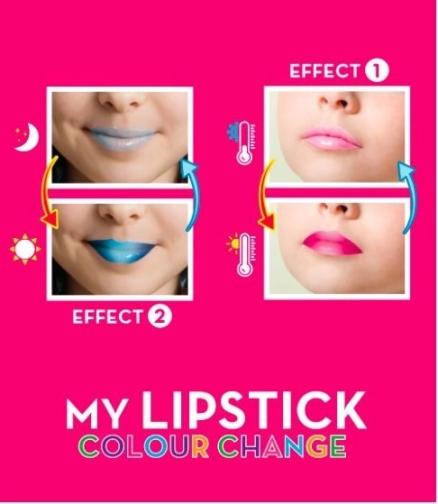- Különleges termokróm és fotokróm porral készül, melyek hatására a rúzs akár víz, akár fény hatására megváltoztatja a színét.