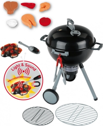 Interaktív gyerek kerti grillsütő kerekeken WEBER tartozékokkal, fénnyel és hanggal