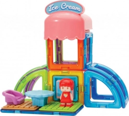 A Magformers Városka Cukrászda építőkészlet 14 mágneses formából és 8 funkcionális kiegészítőből áll. Lehetővé teszi, hogy különféle építészeti megoldásokat hozzon létre a cukrászdák valósághű modelljeivel a saját fantáziája szerint. További Magformers darabok hozzáadásával az építmények még nagyobbak és változatosabbak lesznek. Az eredmények félig nyitott keresztmetszetű formát öltenek, amelyben látható a külső és belső megoldás, amelyeket variálni lehet.