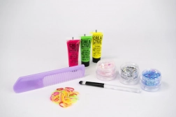 Minden biztonságos és gyors használatra készült felnőtt felügyelete mellett. Az ecsettel és a fésűvel pontos felvitelt érhetsz el, a gumigyűrűk segítenek a frizurakészítésben, a csillámok pedig megadják a végső hatást. Ideális ajándék kis fodrászoknak és a kreativitás rajongóinak.