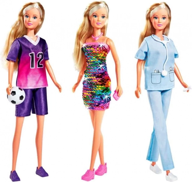 A Steffi Love baba változatos szerepeket és fantáziavilágot hoz a gyerekek életébe. A három különböző öltözéknek köszönhetően a kicsik könnyedén válthatnak hivatásokat és hobbikat – az orvostól a focistáig, egészen a parti sztárjáig a sequin SWAP ruhában, amely színt vált a klasszikus ezüstről sokszínűre.