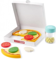Ez a vidám pizzakészlet lehetővé teszi a kis szakácsok számára, hogy összekapcsolható darabokból teljes pizzát rakjanak össze, és tapadós hozzávalókkal díszítsék. A pizzás doboznak köszönhetően a játék élethű, és támogatja a szerepjátékot.