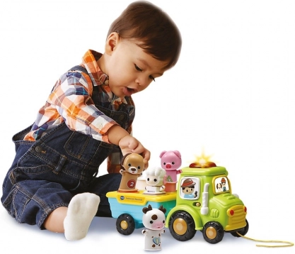 - Interaktív traktor pótkocsival és behelyezhető állatokkal