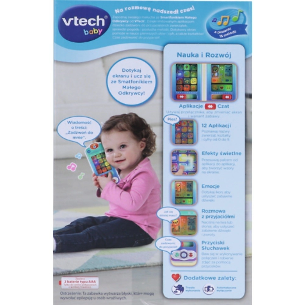 A Kis Felfedező interaktív gyerek okostelefon támogatja a gyerekek természetes kíváncsiságát. Az utánzott alkalmazások lehetővé teszik „barátságos állatok” felhívását, az „időjárás-előrejelzés” megismerését és vidám dallamok lejátszását. Az érintőképernyő játékosan segíti az első szavak, számok és alakzatok elsajátítását.