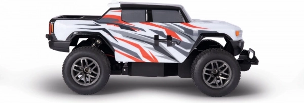A Carrera GMC Hummer EV RC autót dinamikus vezetésre tervezték terepen és kemény burkolaton egyaránt. A magas alváz, a nagy terepkerekek és a hatékony csillapítás lehetővé teszik az egyenetlenségek sima leküzdését. A pontos, arányos vezérlés kiváló irányítást ad a haladási irány és sebesség felett, így a kezdők és a haladók is élvezni fogják a vezetést.