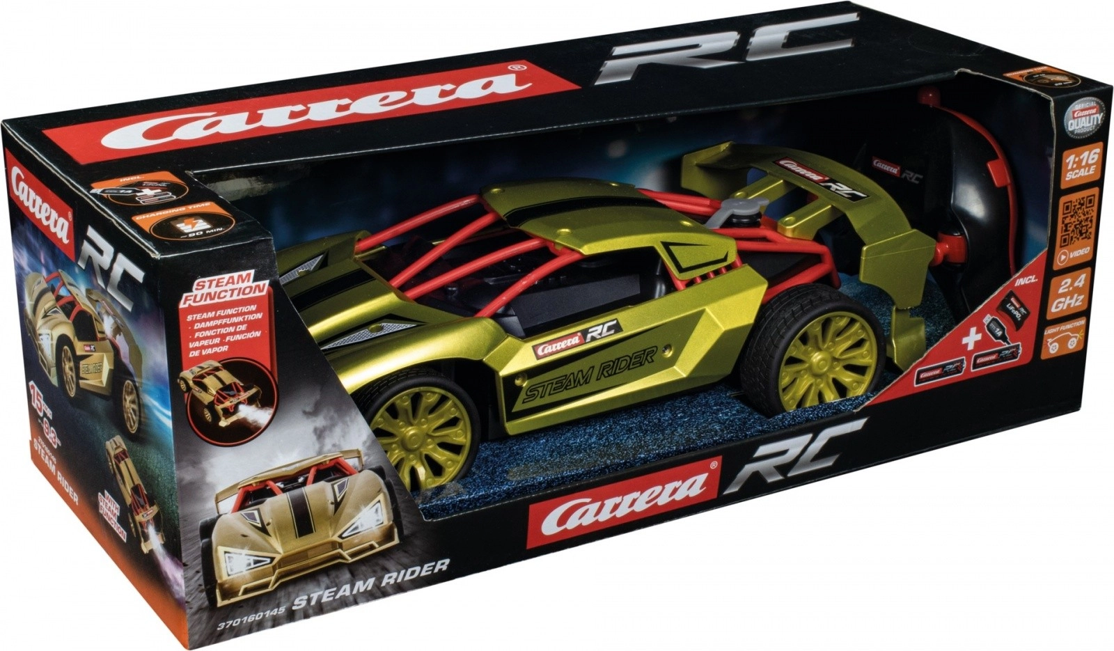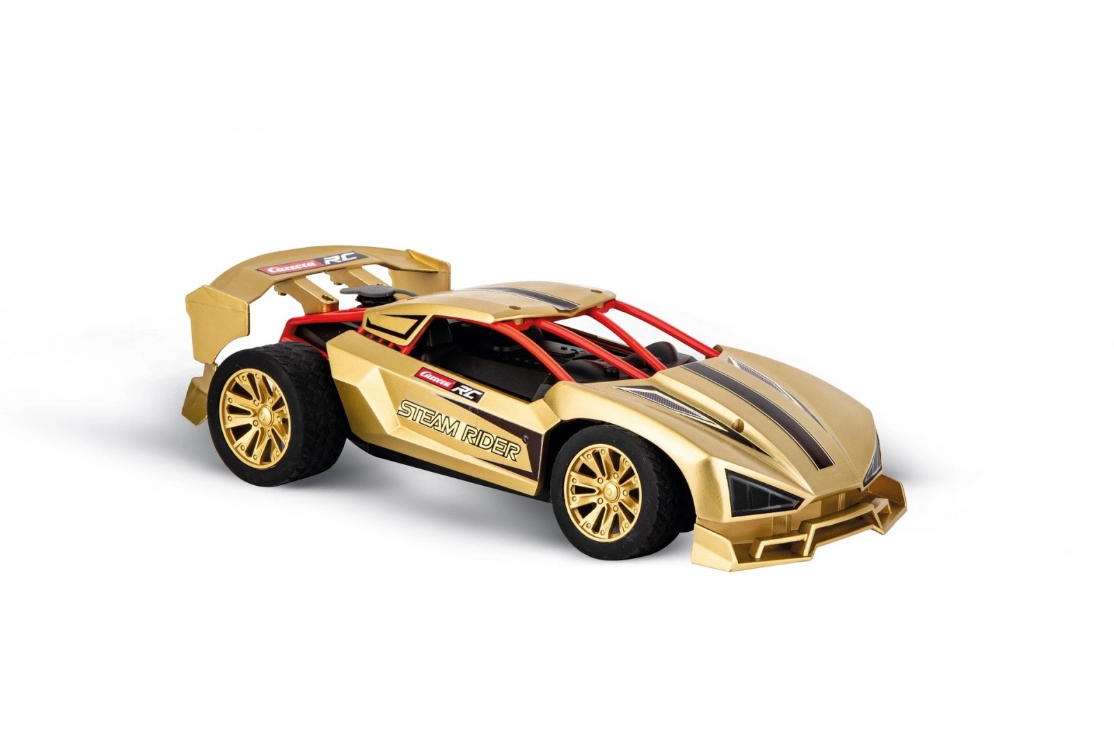 A Steam Rider egy elegáns RC speedster, amely nemcsak megjelenésével, hanem effektjeivel is lenyűgöz. Elég vizet tölteni közvetlenül a modellbe, és egyetlen gombnyomással valósághű gőzeffektet idézhetsz elő, amely menet közben „füstölgő” abroncsok hatását kelti. A LED fényekkel együtt a modell nappal és éjszaka is feltűnő.