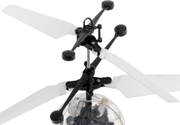 A vezérlés nagyon egyszerű: kapcsold be a játékot, állítsd függőlegesen a tenyeredre, és rövid idő múlva magától felszáll. Az elasztikus rotorok növelik a biztonságot, és akadálynak ütközéskor a motor leáll, így a gömb lassan süllyedni kezd. Esés után a játékot ki kell kapcsolni, majd újra bekapcsolni. A légáramlás (szél, ventilátor, klíma) befolyásolhatja a stabilitást – az első repüléseket nyugodt környezetben ajánljuk.