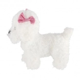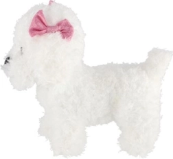 Ez a pihe-puha plüss kutyus kedves arckifejezésével és selymes bundájával minden gyermeket megörvendeztet. A 21 cm-es kompakt méretnek köszönhetően könnyen hordozható, így otthon, a babakocsiban és utazás közben is társaságot nyújt. A puha anyagok kellemes tapintásúak, és biztonságérzetet adnak elalváskor.