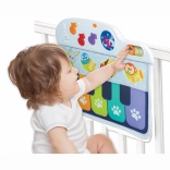 A kiságyra szerelhető zongora úgy lett tervezve, hogy biztonságos és puha legyen, miközben kellemes hangokat ad ki, amelyek felkeltik a gyermek figyelmét. A gyermek játszhat a kiságyban ülve vagy fekve is, a színes hangjegyek lábbal történő megnyomásával. Ez a játék három játékmódot kínál, lehetőséget biztosítva a zongora hangjának és további három hangszer: gitár, hárfa vagy trombita hangjának választására.