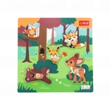 A színes grafikával díszített, erdei állatos fa kirakó úgy készült, hogy egyszerre szórakoztassa a gyerekeket és fejlessze készségeiket. Minden darab masszív, jól megfogható, és fa gombbal van ellátva a könnyű kiemeléshez. Az alaplap kimart formákkal és a darabbal megegyező fekete–fehér képpel segít az intuitív párosításban.