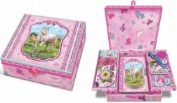Fedezze fel a praktikus rendszerezést és a varázslatos designt: a dekoratív, unikornisos doboz kinyitásakor két oldalsó, kihajtható polc tárul fel, amelyek alatt biztonságos hely rejtőzik a naplónak. Ideális a gyerekszobába, és eredeti tárolódoboz apróságok számára.
