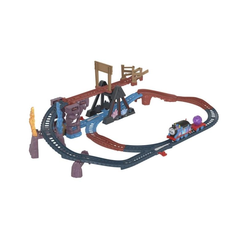 Indulj el Thomasszal kristályos kalandra! Ez az akciódús vonatpálya-készlet többszintes pályát kínál felvonóhíddal, kereszteződéssel és tematikus „kristály” elemekkel. A mozdony tetején lévő kapcsolóval Thomas elindul a síneken, és leszállítja a rakományt a barlangba.