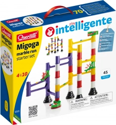 A Migoga kezdőkészlet sokszínű építőkészletet kínál masszív alapokkal, oszlopokkal és színes pályákkal, amelyeket könnyedén összepattinthatsz. A gyűjtőkosaraknak, spiráloknak, hidaknak, malmoknak és rugós adagolóknak köszönhetően folyamatos és dinamikus útvonalakat hozhatsz létre, amelyeken a golyók szintről szintre száguldanak.