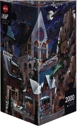 Élvezze a hosszú órákon át tartó szórakozást a karikaturista Loup stílusos kirakójával. Ez a nagy kirakó kísértetkastély motívummal 2000 darab-ból áll, szokatlan, háromszög alakú dobozban érkezik, és posztert is tartalmaz mintának. Az összeállított kép mérete megközelítőleg 68 × 96 cm.