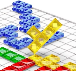 A Blokus pörgős, absztrakt stratégiai játék 2–4 játékos számára, amelyben felváltva helyezitek el a 21-21 elemű színkészleteket egy masszív négyzetrácsos táblára. Minden újonnan lerakott elemnek legalább egy saját elemet kell csak sarokkal érintenie – soha nem éllel. Ez az egyszerű feltétel mély taktikai kihívást és izgalmas térfoglaló párharcokat teremt.