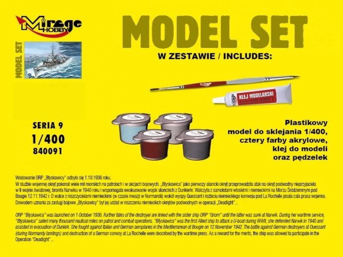 A készlet egy összeállítható műanyag hajómodellt tartalmaz.