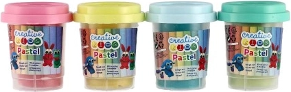 Fejlessze a gyerekek kreativitását a négy különböző színű poharas gyurmakészlettel. Az anyag kellemesen puha, jól gyúrható és nyújtható, így ideális az első modellezési próbálkozásokhoz és a kifinomultabb alkotásokhoz is.