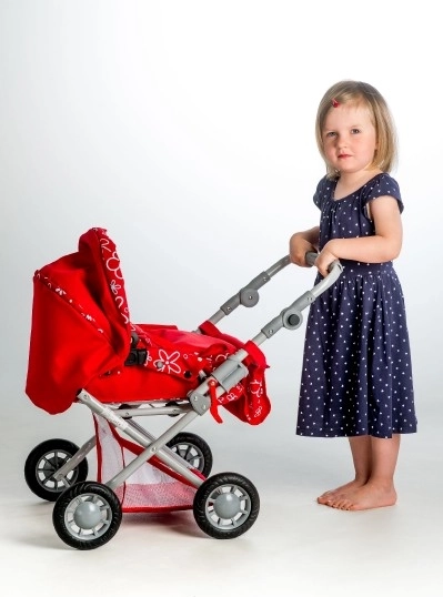 A Magda babakocsi babáknak valósághű kivitelével és praktikus funkcióival nyűgöz le. A stabil fém váz, a textil bölcső és az állítható napellenző kényelmes “utaztatást” biztosít a kedvenc babáknak vagy plüssöknek. Könnyű összecsukhatóságának köszönhetően kisebb terekbe vagy utazáshoz is ideális.