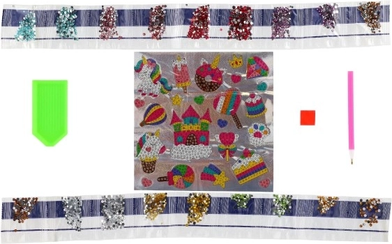 Fedezd fel a szórakozást a Gyémántfestés Egyszarvúak és édességek készletünkkel. Ez a készlet mindent tartalmaz, amire szükséged van gyönyörű matricák készítéséhez csillogó kövekkel díszítve. A készlet ideális mindenki számára, aki szereti a kreatív tevékenységeket és az elbűvölő dekorációkat.