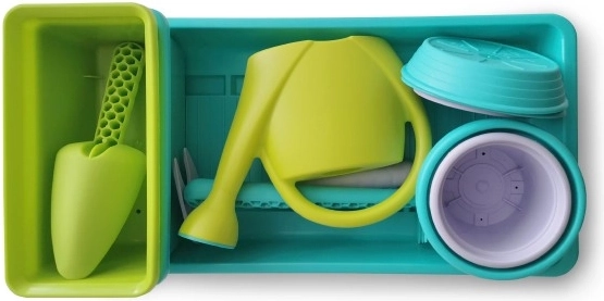 Gyermek kerti szerszámkészlet a kis kertészeknek – ideális szórakozás! Mindent tartalmaz, ami szükséges fűszernövények és más növények neveléséhez. A készlet tökéletesen felkelti a gyerekek érdeklődését a minket körülvevő természet iránt. A készlet tartalma: 4× virágcserép alátéttel 2 méretben, 3× kaspó, 2× mini virágláda, 1× alátét, 1× locsolókanna, 1× lapát, 1× gereblye, 1× kapa. Csomag mérete: 40 × 20 × 11 cm