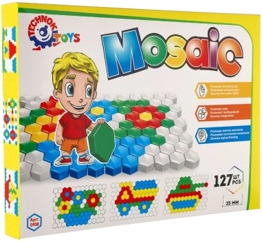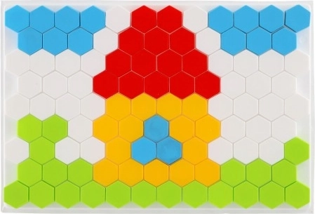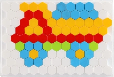 Merüljön el a színek és formák világában ezzel a mozaikos építőszettel. Az alap fehér, méhsejt mintájú, amelyre színes műanyag elemeket lehet elhelyezni. A mozaik támogatja a kreativitást, a térbeli készségeket és fejleszti a finom motorikát.