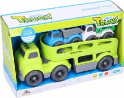 Nagy autószállító tréler ideális választás lerobbant autók elszállításához vagy a járművek gyors visszajuttatásához a tulajdonosokhoz. Három kisautóval érkezik, és két színben kapható.