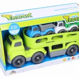 Könnyű és hatékony módot keres a kisautók szállítására? Ez a masszív tréler segít ebben! Hossza 30 cm, ami elegendő helyet biztosít akár három kisautó számára, amelyek a csomag részét képezik. A tréler kék és zöld változatban érhető el, így mindenki megtalálja a kedvencét.