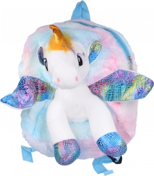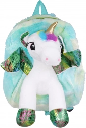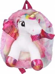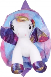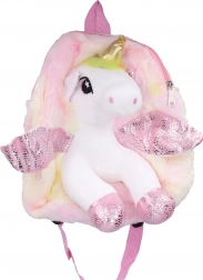 Plüss hátizsák egyszarvú mintával tökéletes divatos kiegészítő minden kis hölgy számára, akik szeretik ezeket a varázslatos lényeket. Ideális fontos dolgok tárolására, legyen az otthon vagy utazás közben.
