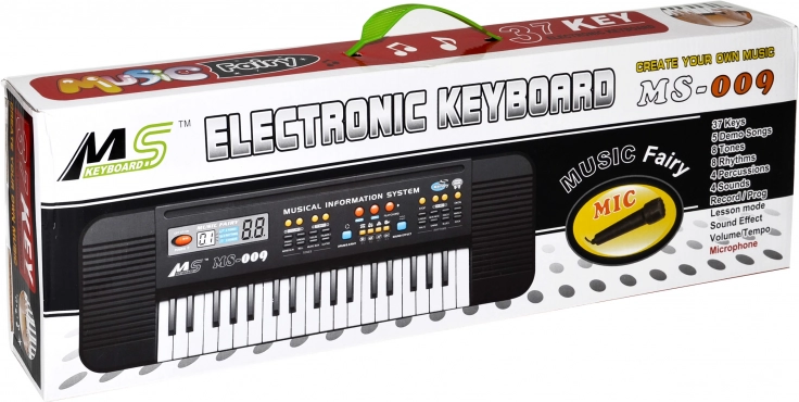 Gyerek digitális zongora, amely napokon át szórakoztatja a kis zenészét. Rendelkezik 37 billentyűvel, mikrofonnal és kínálattal 8 hangszín és 8 ritmus saját dallamok készítéséhez.