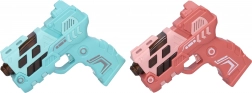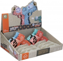 Szórakoztató gyerek játékpisztoly, 12 cm méretben, fény- és hangeffektekkel, valamint kivetítéssel a még nagyobb élményért. 4 színváltozatban elérhető (kék, zöld, narancssárga, rózsaszín). 2× AAA elemmel működik, az elemek nem részei a csomagnak.