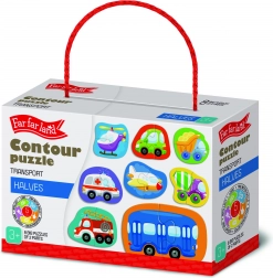 Szórakoztató körvonalas puzzle készlet közlekedési eszközök motívumaival a FAR FAR LAND-től, amely örömet szerez a legkisebb építőknek. A csomag 8 egyszerű képet tartalmaz, képenként 2 darabbal – ideális az első kirakásokhoz és a finommotorika gyakorlásához. A nagy daraboknak és a markáns formáknak köszönhetően az összeállítás könnyű és motiváló. Egyszerű, két darabból álló puzzle, 8 közlekedési motívum, támogatja a motorikát és a koncentrációt.