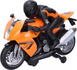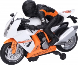 Élvezd az akciódús száguldást a 28 cm hosszú, pilótafigurával ellátott, stílusos versenymotorral. Fény- és hangeffekteket kínál, valósághű dizájnnal és két színváltozatban – narancs és fehér. Tökéletes a kis versenyzőknek és a motorrajongóknak.