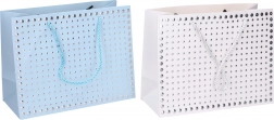 Ez a minőségi papírból készült ajándéktáska remek választás születésnapra, ünnepekre vagy apró figyelmességekhez az év bármely szakában. Az univerzális minta bármilyen alkalomhoz illik, és letisztult, elegáns megjelenést kölcsönöz az ajándéknak.