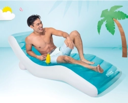 A nagylelkű 191 × 99 cm-es méret a magasabb felhasználóknak is megfelel, a 100 kg-ig terhelhető kialakítás pedig nyugodt pihenést garantál. A praktikus kivitel gyors felfújással és leeresztéssel a medencénél, a strandon, a füvön vagy a teraszon egyaránt előnyös.