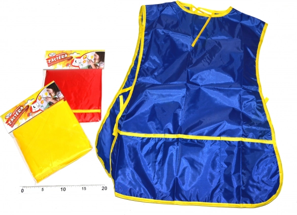 Praktikus, kétoldalas kötény gyerekeknek rajzórára, 55 × 40 cm méretben. A derékban megkötős kialakításnak köszönhetően jól tart, elöl 3 funkcionális zsebe van, és megbízhatóan védi a ruhát a festékektől és szennyeződésektől. Vége a festékfoltos pólóknak és nadrágoknak gyermekei alkotás közben.