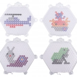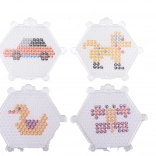 Hatszögletű alátétek pöttyökkel, amelyek helyén tartják a gyöngyöket, és segítenek részletgazdag motívumok, például autó, kutyus, kiskacsa vagy pillangó megalkotásában.