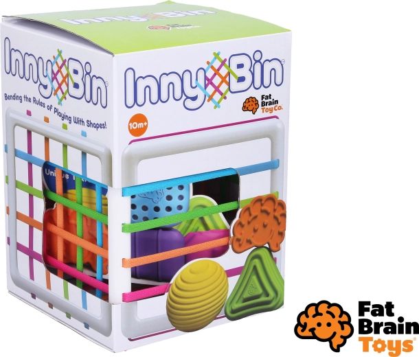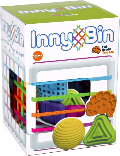 A FAT BRAIN InnyBin modern bedobó játék, amely a klasszikus formaillesztést interaktív, érzékszervi játékká alakítja. A gyerekek a formákat nyomkodhatják, megfoghatják, bedobhatják és kihúzhatják a színes, rugalmas zsinórokon keresztül – anélkül, hogy pontos nyílást kellene eltalálniuk. Ez fejleszti az ujjak ügyességét, a türelmet és a természetes kíváncsiságot.