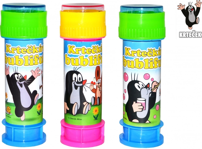 Élvezze a végtelen szórakozást a Kisvakond figurás buborékfújóval! Minden 50 ml űrtartalmú üveg három különböző változatban kapható: buborékok, egér és nyuszi.