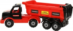 A tágas plató megkönnyíti a rakomány egyszerű fel- és leöntését – ideális építkezős játékhoz homokkal vagy kockákkal.