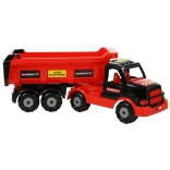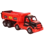 A masszív MAMMOET műanyag billencs valósághű megjelenésével és egyszerű kezelhetőségével lenyűgözi a kis építőket. A nagy, billenthető platóval ideális homok vagy építőkockák szállításához, és hosszú órákon át tartó kreatív szórakozást kínál. A játék hálóban van csomagolva, és praktikus méreteinek köszönhetően beltéri és kültéri játékhoz egyaránt alkalmas. Az ellenálló kivitel, a billenthető plató és a szabadonfutó kerekek kényelmes „push-and-go” gurítást biztosítanak.