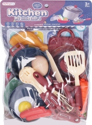 Szórakoztató konyhai szett kis szakácsoknak, amely tartalmaz egy főzőlapot, edényeket és élelmiszer-maketteket a valósághű főzőjátékhoz. Támogatja a kreativitást, a fantáziát és a finommotorikát a mindennapi játék során.