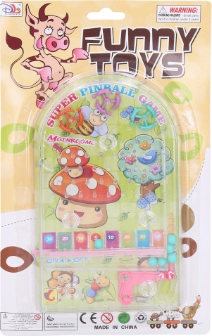 Szórakozzon ezzel az asztali flipper játékkal, melynek mérete 11x20 cm, négy érdekes változatban: gomba, méh, házikó és gyerekek.
